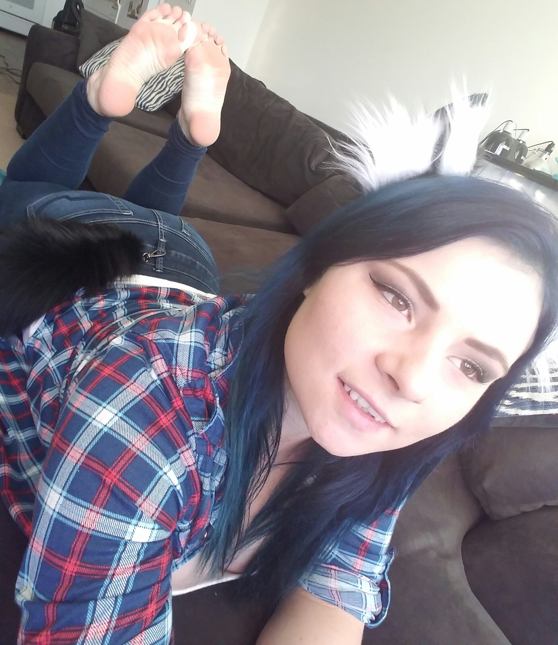 Her body is all natural and truly amazing. She has a pair of massive D size titties and a perfect round booty that she isn’t shy to show extensively during the whole show. Her body is curvaceous and very well shaped because she keeps it in good shape by working out. Because life isn’t just about watching movies you know.